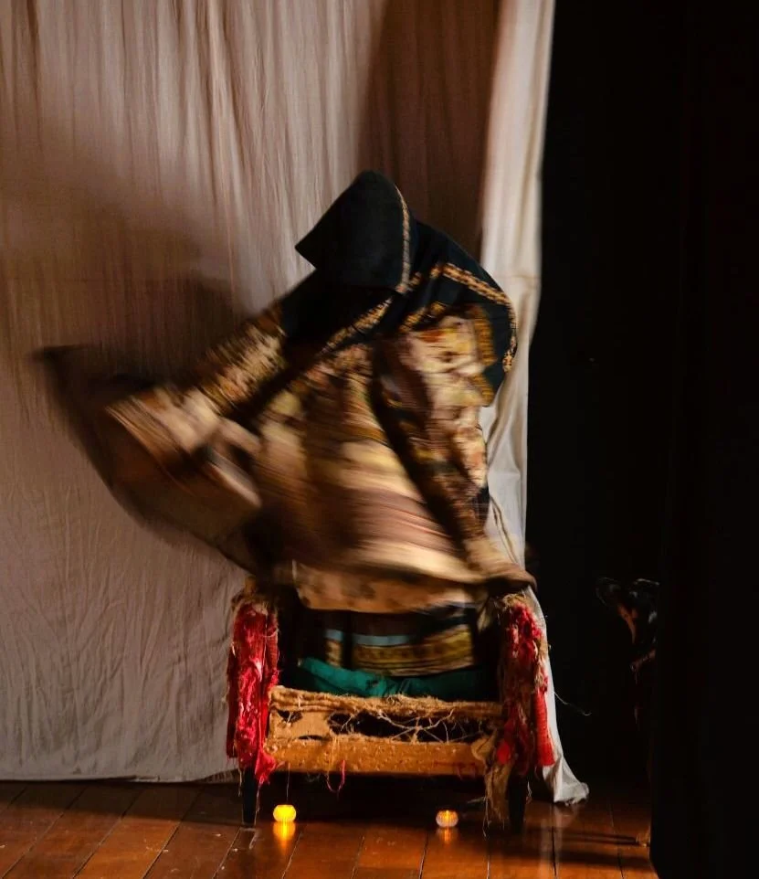 Desde la butaca vivimos una quietud compartida, entre lo que susurraba la Coleccionista para sí misma y los otros. Profundos momentos donde todo hablaba: esas piezas que hacen parte de tu ser coleccionista, así como esos gruesos abrigos y riquísima indumentaria cocida y construida por tu propia mano, donde fue posible ver todos los personajes con los que permanentemente dialogas, complementado esto con una acertada proyección audiovisual, que devela, con herramientas digitales, lo que probablemente sucede en tu interior, en tu cuerpo y en tu ser coleccionista. Momentos que hacen posible mirar con ojos sensibles la arquitectura poética sostenida en imágenes de tu propia historia, la de tus seres presentes y ausentes, y todo aquello que has ido recopilando en tu corazón, para entregarnos esta fábula viva y seductora.