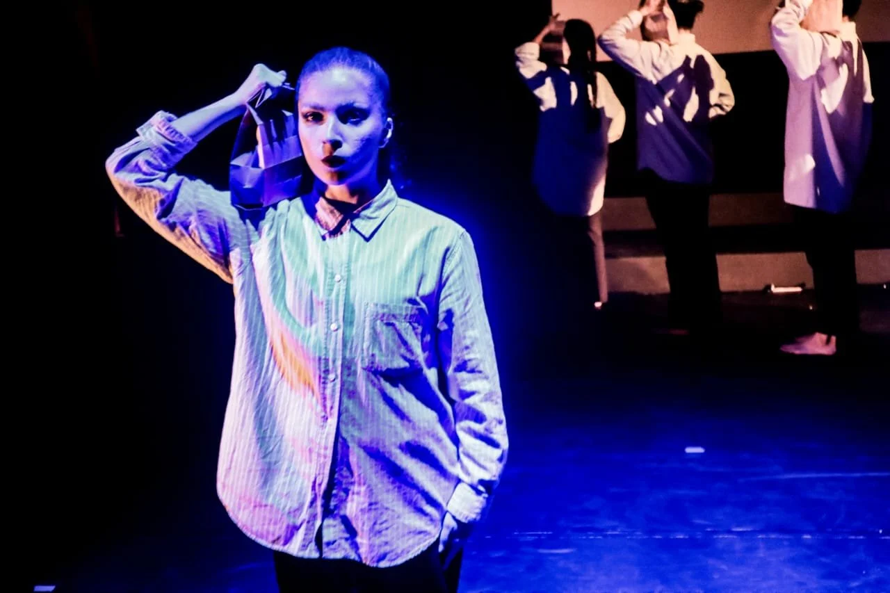 La sala se convirtió en un espacio de atención absoluta: gestos repetidos, cuerpos que giraban, caían o se movían en remolinos, música insistente que atrapaba y a veces desorientaba. Peter Ronquillo, director y coreógrafo, asumió incluso la ausencia de una intérprete sin que eso alterara la experiencia; su presencia marcaba el pulso del espectáculo y daba inicio a la llamada del público.