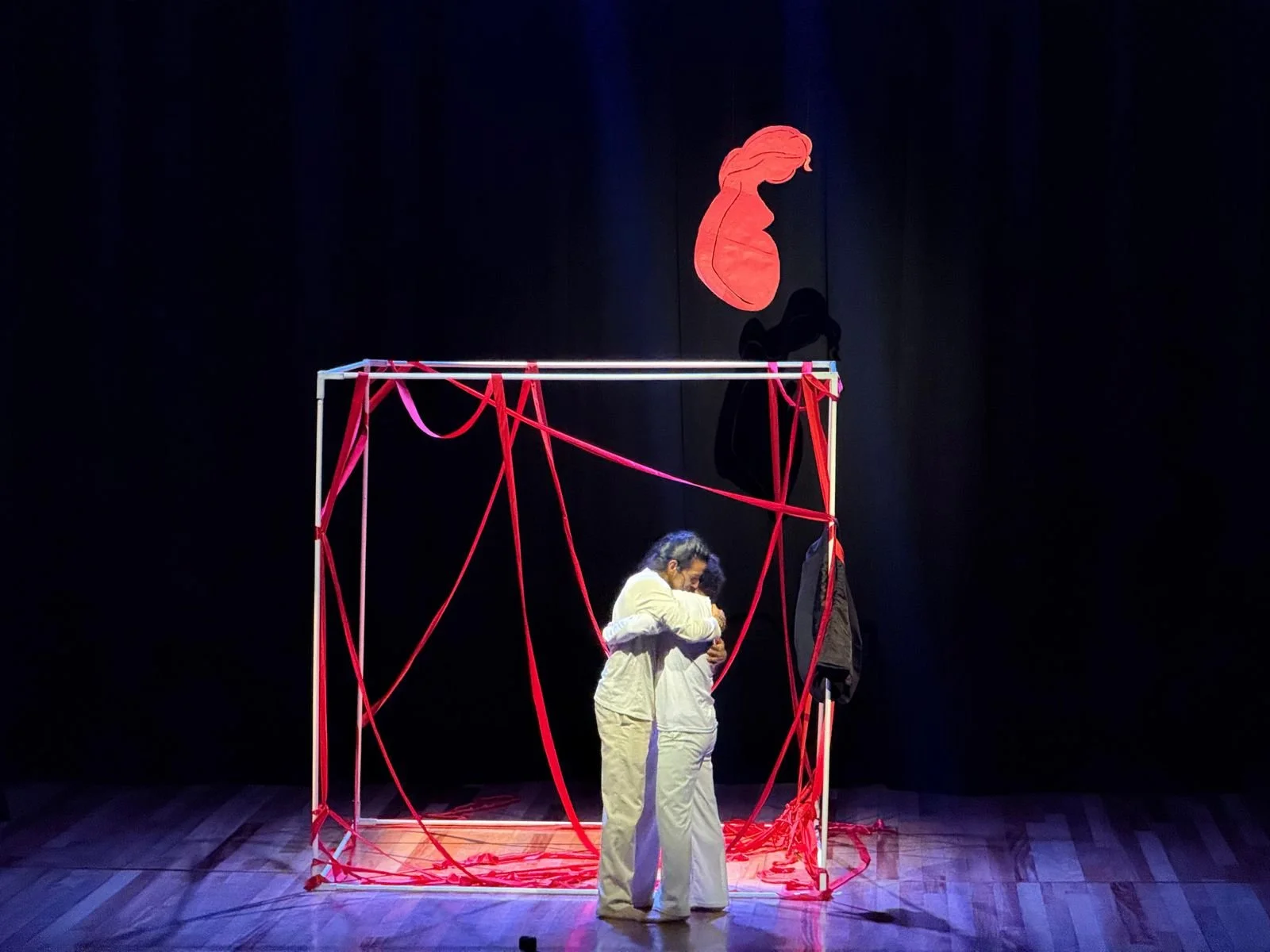 El final de esta puesta en escena es profundamente existencial, la cinta roja ya no está, y en su lugar aparece el cordón umbilical que nos conecta con esa sustancia que vitaliza, el amor, sinónimo de cuidado y protección maternal.