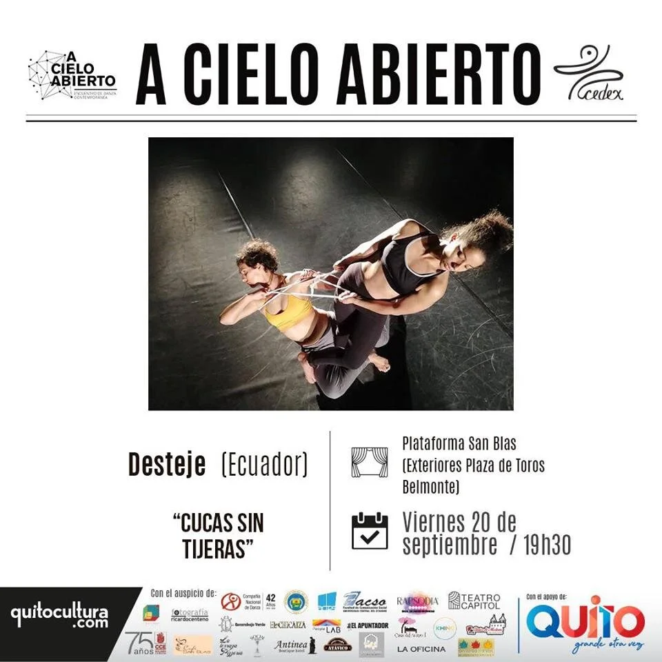 CUCAS SIN TIJERAS Friday, September 20, 2019 7:30 PM 8:30 PM 19:30 20:30 Plaza San Blas, exteriores Quito Ecuador (map) Google Calendar ICS